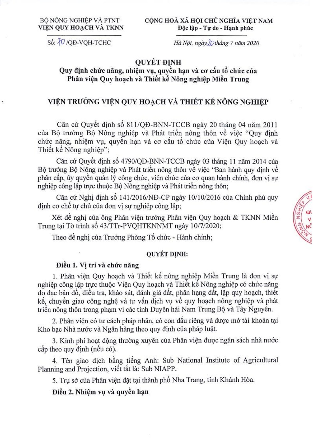 PHÂN VIỆN QUY HOẠCH VÀ THIẾT KẾ NÔNG NGHIỆP MIỀN TRUNG